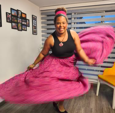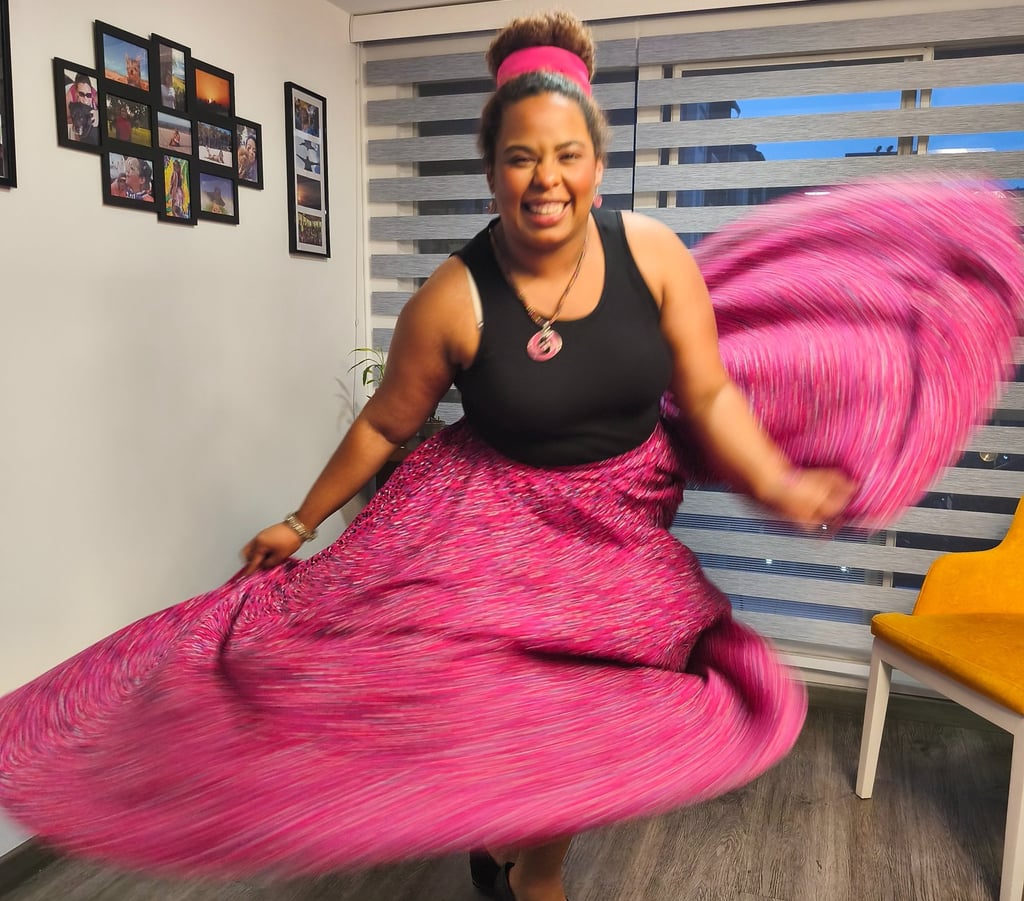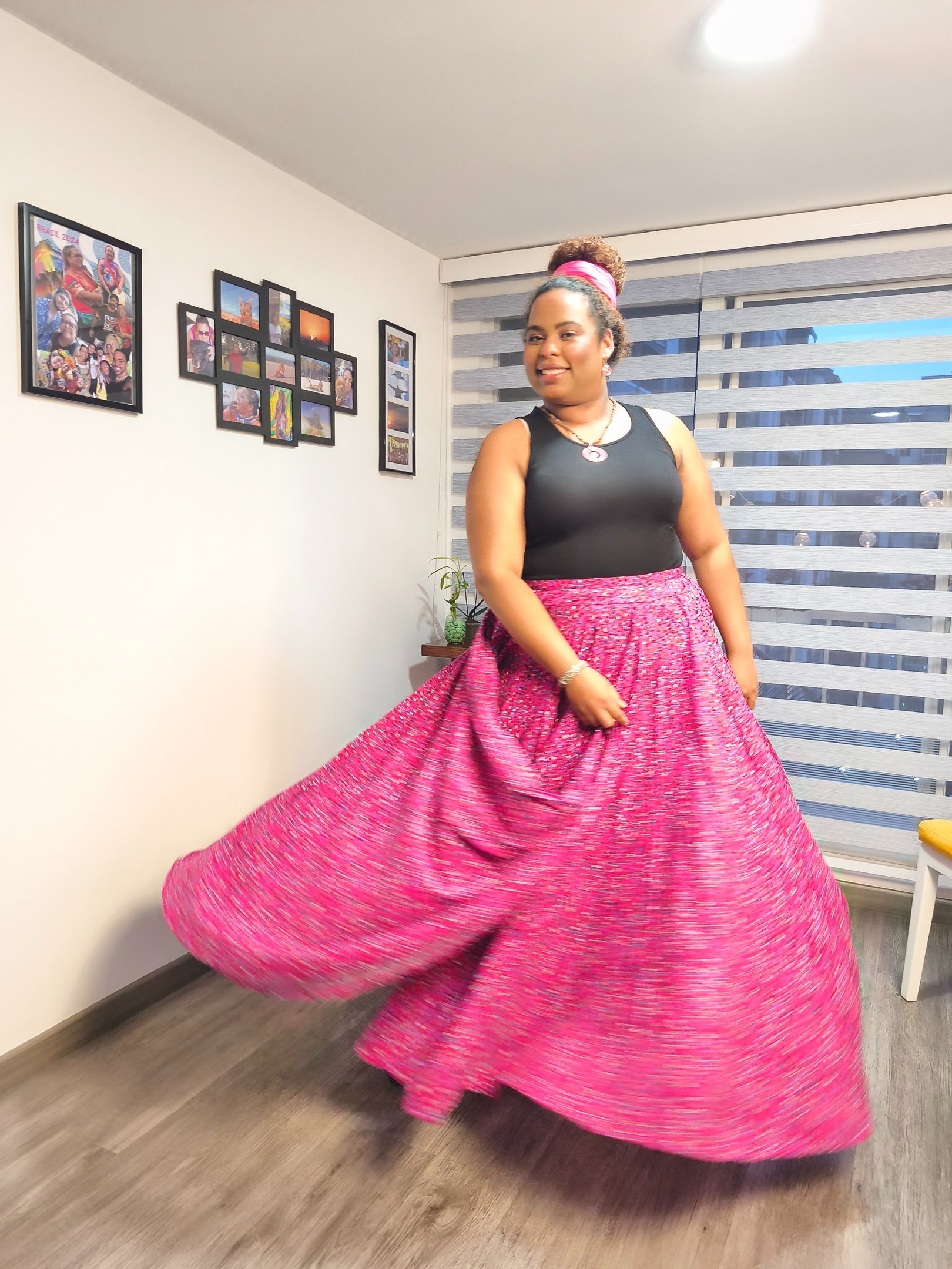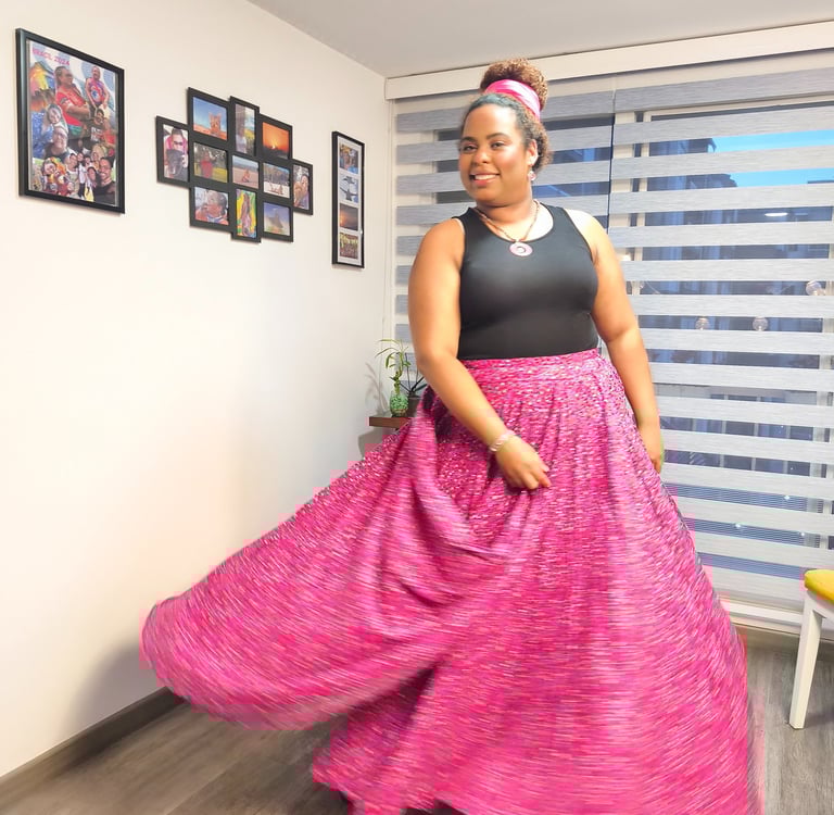 Y para muestra, un botón, ¡o mejor dicho, una musa! Nuestra increíble modelo, Génesis, vivió en carne propia la magia de la Falda Bahiana. Al ponérsela, Génesis conectó de una manera profunda con sus raíces afrodescendientes. Fue un viaje hermoso de aceptación y abrazo de su ancestralidad, permitiéndose disfrutar de estampados coloridos y divertidos que antes quizás no se atrevía a usar. Dejó fluir a su niña interior, esa chispa de alegría y libertad que todos llevamos dentro, y encontró en sí misma el poder que siempre se había negado: el de asumirse negra, poderosa, empoderada. ¡Fue simplemente transformador!